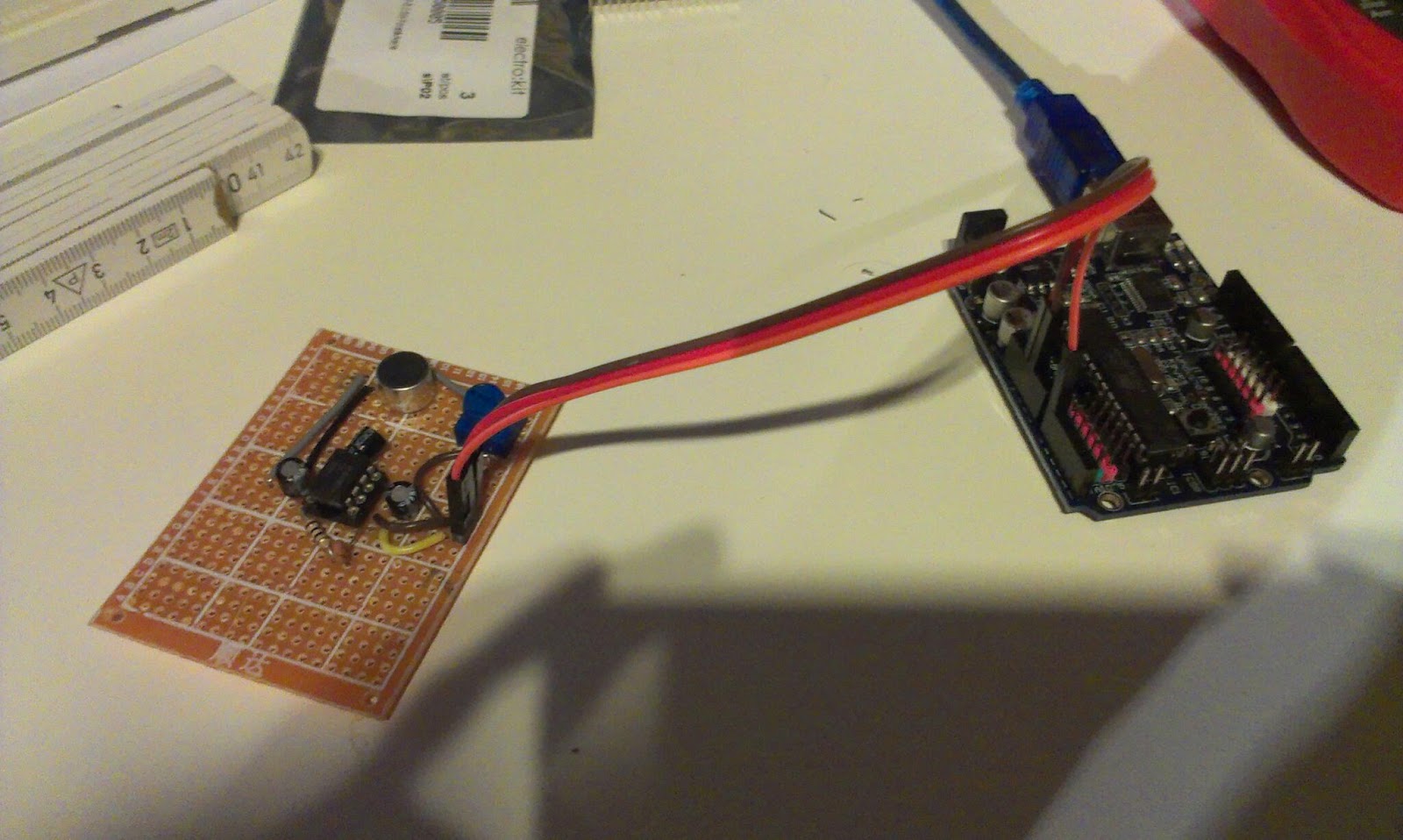 Then I wired the connections to the USB and tried power it by usb. The LED lights up! Showing us we have USB connection