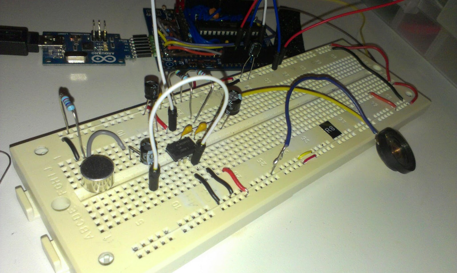 | The ATtiny2313 on a breadboard |