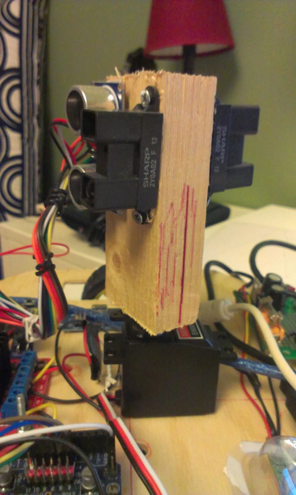 | The servo should turn the robots head so that distance sensors can make measurements in all directions, problem was that the old servo was not strong enough to turn the head with the resistance of the cables. |